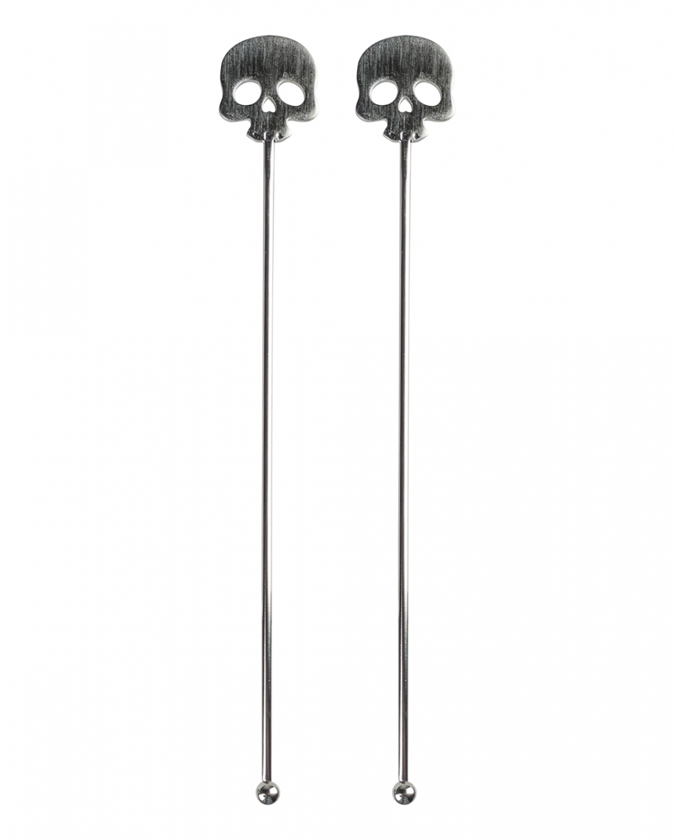Skull Cocktail Rührstab 2er Set Edelstahl Stäbe mit Totenschädel Motiv für Cocktails Verleihe deinen Cocktails mit unseren Totenkopf Cocktail Rührstäben eine mysteriöse Note. Stelle dir vor, wie du an einem gruseligen Halloween-Abend oder auf einer Gothic-Party einen Cocktail genießt, der mit diesen edlen Totenschädeln gerührt wurde. Unsere Totenkopf Cocktail Rührstäbe für Goths und Halloween 2 Stück bestehen aus 430 Edelstahl. Die edlen Totenschädel am Ende der Rührstäbe verleihen deinen Getränken eine einzigartige Note und machen sie zum Blickfang auf jeder Party. Lieferumfang: 1 x Skull Cocktail Rührstab 2er Set Inhalt: 2 Stück Farbe: Silber Größe: ca. 22 x 2,5 cm Material: 430 Edelstahl Edelstahl Stäbchen mit Totenschädel Cocktail Besteck für Halloween und Gothics Geniale Gothic und Halloween Homeware