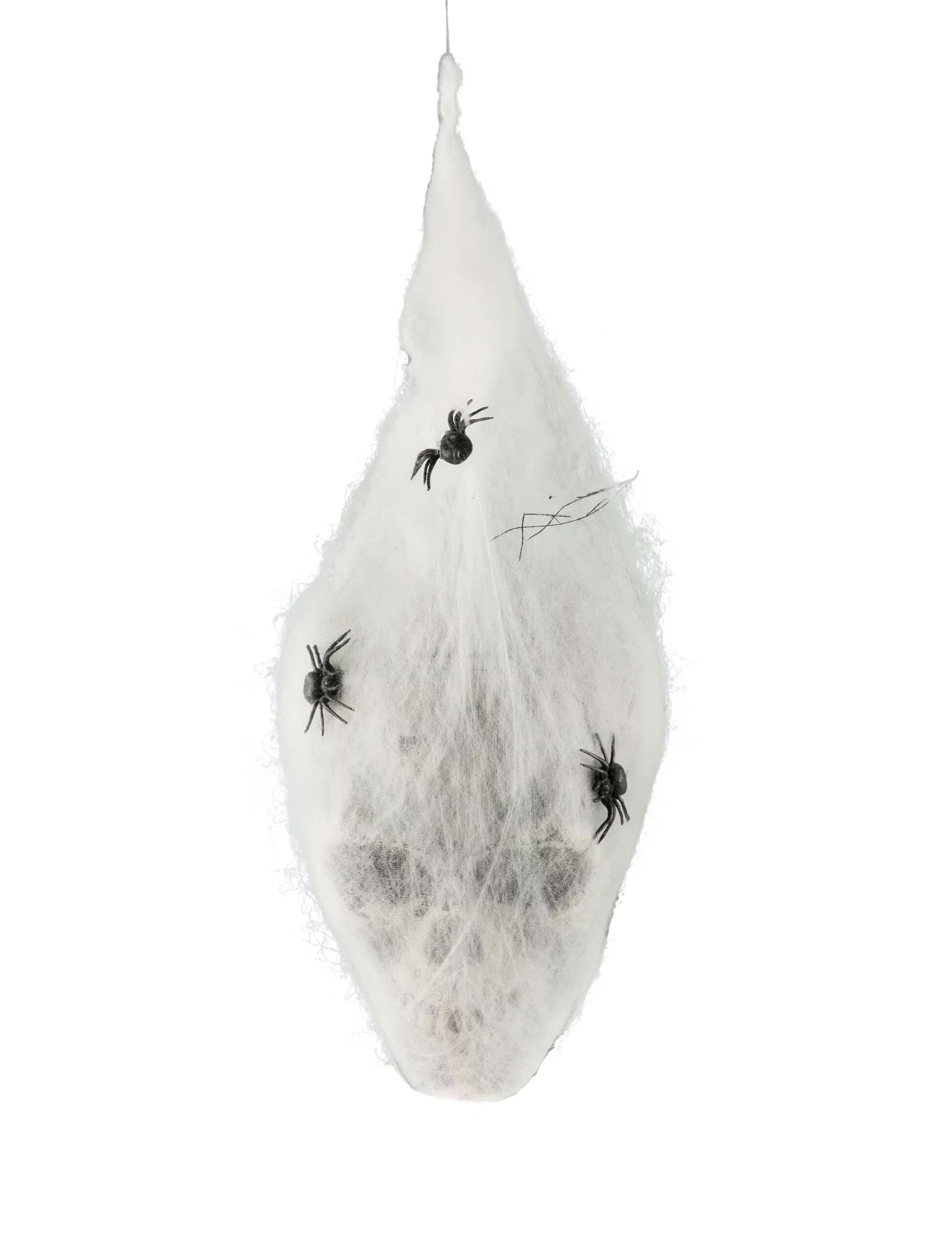 Dieser gruselige Zeitgenosse hat schon vor langer Zeit das Jenseits betreten. Die Rede ist von dem über und über mit Spinnennetzen verhangenen Totenkopf, der aus Deiner Halloween-Location eine Geisterbahn des Grauens macht. Kleine schwarze Spinnen sowie die langsam aufblinkenden roten LED-Leuchten in den Augen runden den Grusel-Look perfekt ab. Natürlich sind auch die 3x 1,5V-Batterien enthalten und werden in einem Batteriefach eingelegt. An dem Batteriefach befindet sich ein Ein- und Ausschalter.