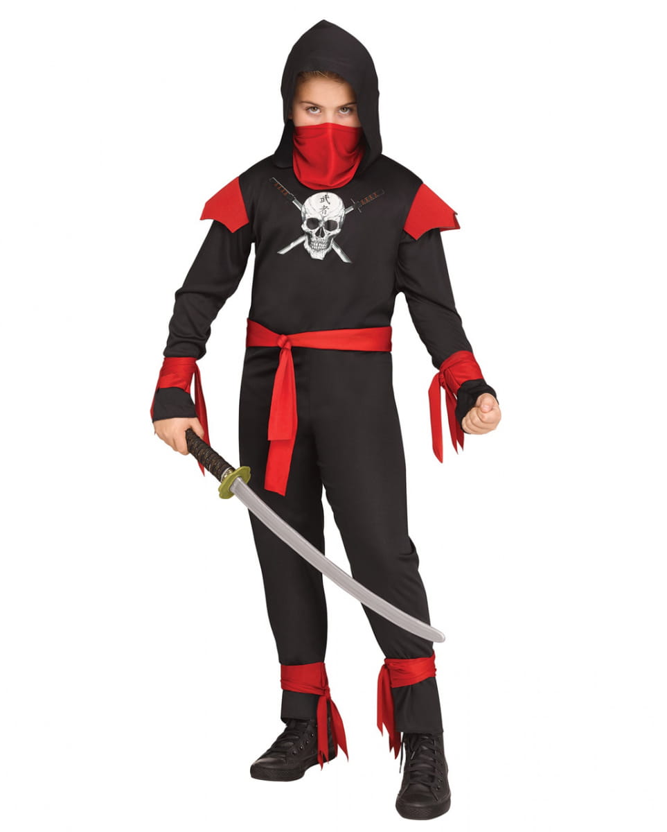 Unisex Kinder Ninja-Kostüm mit Totenkopf Werde zum tapferen Krieger im einzigartigen Kinder-Ninja-Kostüm Das Unisex Kinder Ninja-Kostüm mit Totenkopf ist ein Kinderkostüm für Fasching und Halloween. Ninjas sind bekannt für ihre Konzentration und speziellen Kampftechniken. Kein Wunder, dass gerade Kinder deshalb gerne selbst in die Rolle eines Ninja-Kriegers schlüpfen möchten. Mit dem Kinder Ninja Kostüm-Overall hast du du die perfekte Verkleidung für die anstehende Mottofete gefunden! Das Unisex Kinder Ninja-Kostüm mit Totenkopf besteht aus einem Overall mit Kapuze und Bändern an Armen und Knöcheln. Ein Gesichtstuch als Maske sowie ein roter Gürtel sind ebenfalls in der Lieferung enthalten. Auf der Brust befindet sich ein Totenkopf als besonderer Eyecatcher. Das Kinder Ninja-Kostüm ist weich und angenehm tragbar. Es ist in S-L Größe erhältlich. Lieferumfang: 1 x Unisex Kinder Ninja-Kostüm mit Totenkopf Inhalt: Kapuzen Overall mit Arm und Knöchelbänder, Gürtel, Gesichtstuch als Maske Farbe: Schwarz/Rot/Weiß Größe: S, M, L Material: 100% Polyester Unisex Kinderkostüm Beliebter Ninja Look Spielzeug Schwert nicht inkl Größe S ca. 4-6 Jahre M ca. 8-10 Jahre L ca. 12-14 Jahre XL ca. 14-16 Jahre Brustumfang ca. 55-63 cm ca. 69-76 cm ca. 76-81 cm ca. 81-84 cm Taillenumfang ca. 48-55 cm ca. 58-63 cm ca. 60-66 cm ca. 66-69 cm Körpergröße ca. 97-117 cm ca. 124-137 cm ca. 139-152 cm ca. 152-157 cm Achtung: Der Artikel ist ein Kostüm und kein Spielzeug. Nicht für Kinder unter 3 Jahren geeignet. Kann Kleinteile enthalten, die verschluckt werden können – Erstickungsgefahr. Von Feuer und offenen Flammen fernhalten.