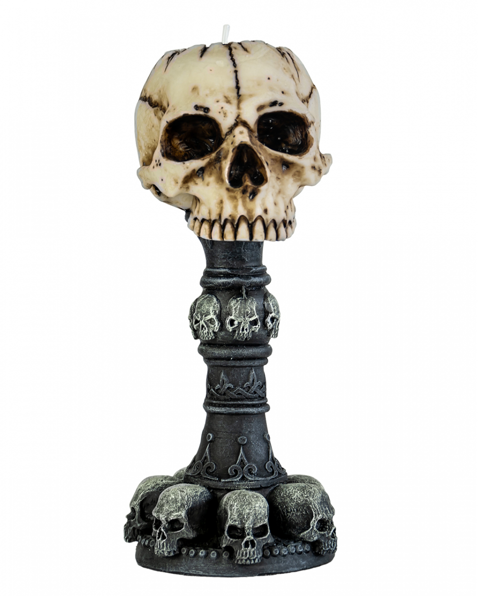 Antiker Totenkopf Teelichthalter mit Totenschädelsammlung 17 cm Halloween Kerzenhalter für Teelichte als Totenkopf Tischdeko Verleihe deinem Zuhause in ein mystisches Ambiente! Unser antiker Totenkopf Teelichthalter mit Totenschädelsammlung ist das perfekte Deko-Element für Fans des Grusels! Der Totenkopf Kerzenhalter ist 17 x 7 x 7 cm groß und aus Kunststein hergestellt. Er hält ein kleines Teelicht auf seiner Schädeldecke, während die dunkle Säule mit Rankenmuster und kleinen Schädeln verziert ist. Lieferumfang: 1 x Totenschädel Teelichthalter mit kleinen Totenköpfen 17cm Farbe: Beige, Schwarz, Grau, Weiß Größe: ca. 17 x 7 x 7 cm Gewicht: 422 g Material: Polyresin (Kunststein) Mittelelterlicher Totenschädel Teelichthalter Kerzenhalter im Totenschädel Look für Teelichter Ständer ist mit Rankenmuster und kleinen Totenköpfen verziert Mit sieben kleinen Schädeln an der Bodenplatte Mit Schonern für empfindliche Oberflächen Gothic Kerzenständer für Totenkopf Fans