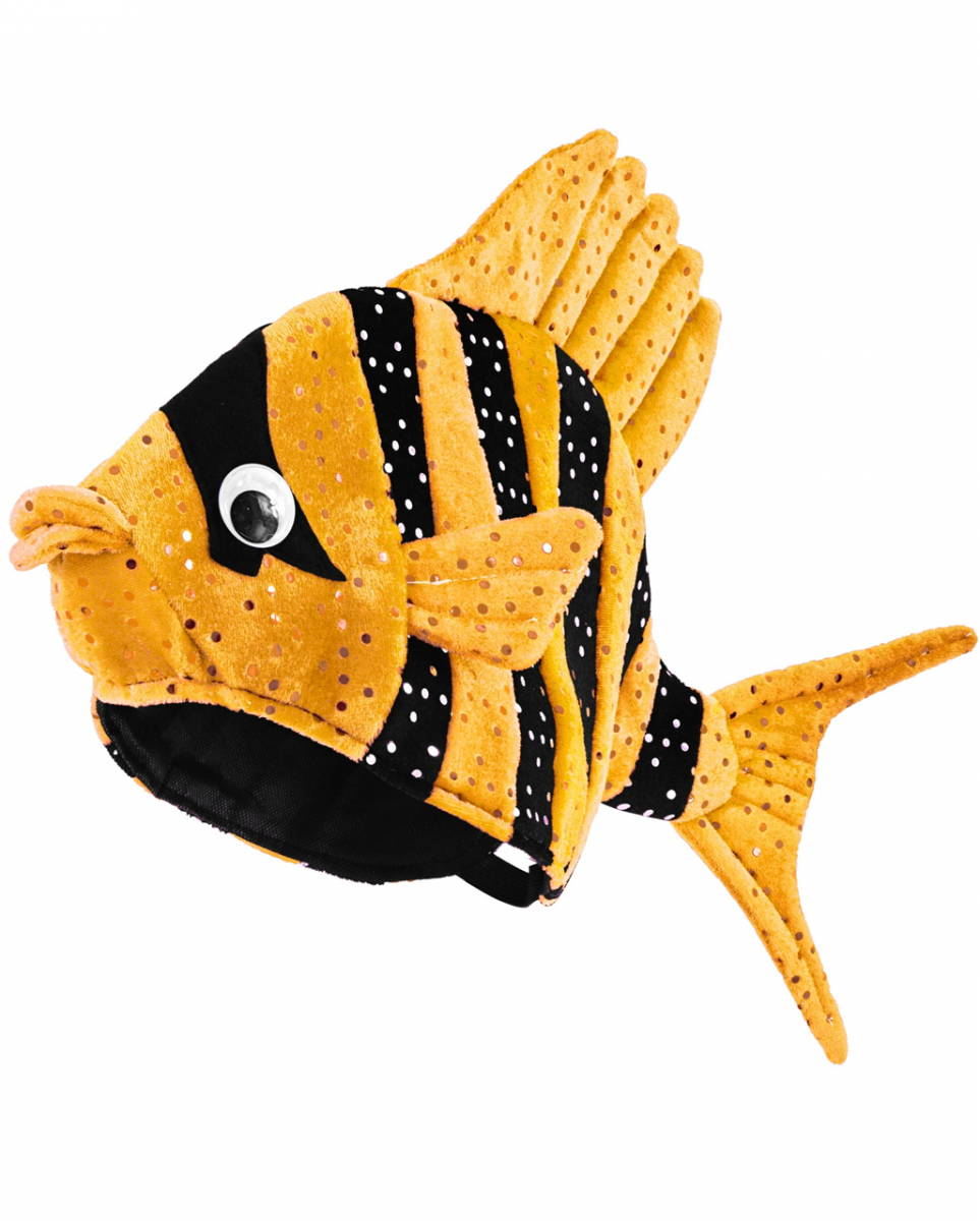 Orange Fisch-Mütze One Size Lustiger Hut als Fisch mit Paillettenschuppen Für deine Beachparty ist alles vorbereitet, dir fehlt nur noch ein lustiger Partyhut? Dann ist die orange Fisch-Mütze deine Rettung! Als lustiger Fischhut ist sie der absolute Brüller, wenn es um bekloppte Kopfbedeckungen geht und bringt einfach jeden zum Lachen. Der orange Fischhut ist eine coole Tiermütze für Damen und Herren der zu Mottofeten, Junggesellenpartys oder auch als Faschingshut getragen werden kann. Die orange Fisch-Mütze ist eine große, weiche Partymütze als Fisch. Er ist orange, mit schwarzen Streifen und kleinen Pailletten, die seine Schuppen darstellen. Süße Flossen und zwei freundliche Kulleraugen machen ihn zum perfekten Begleiter auf der kommenden Kostümparty. Der lustige Fischhut ist in One Size Größe erhältlich und passt auf jeden Kopf. Lieferumfang: 1 x Orange Fisch-Mütze Farbe: Orange/Schwarz Größe: One Size Material: 100% Polyester Witzige Kopfbedeckung für Straßenkarneval und Festivals Mit Kulleraugen und silberfarbigen Pailletten besetzt
