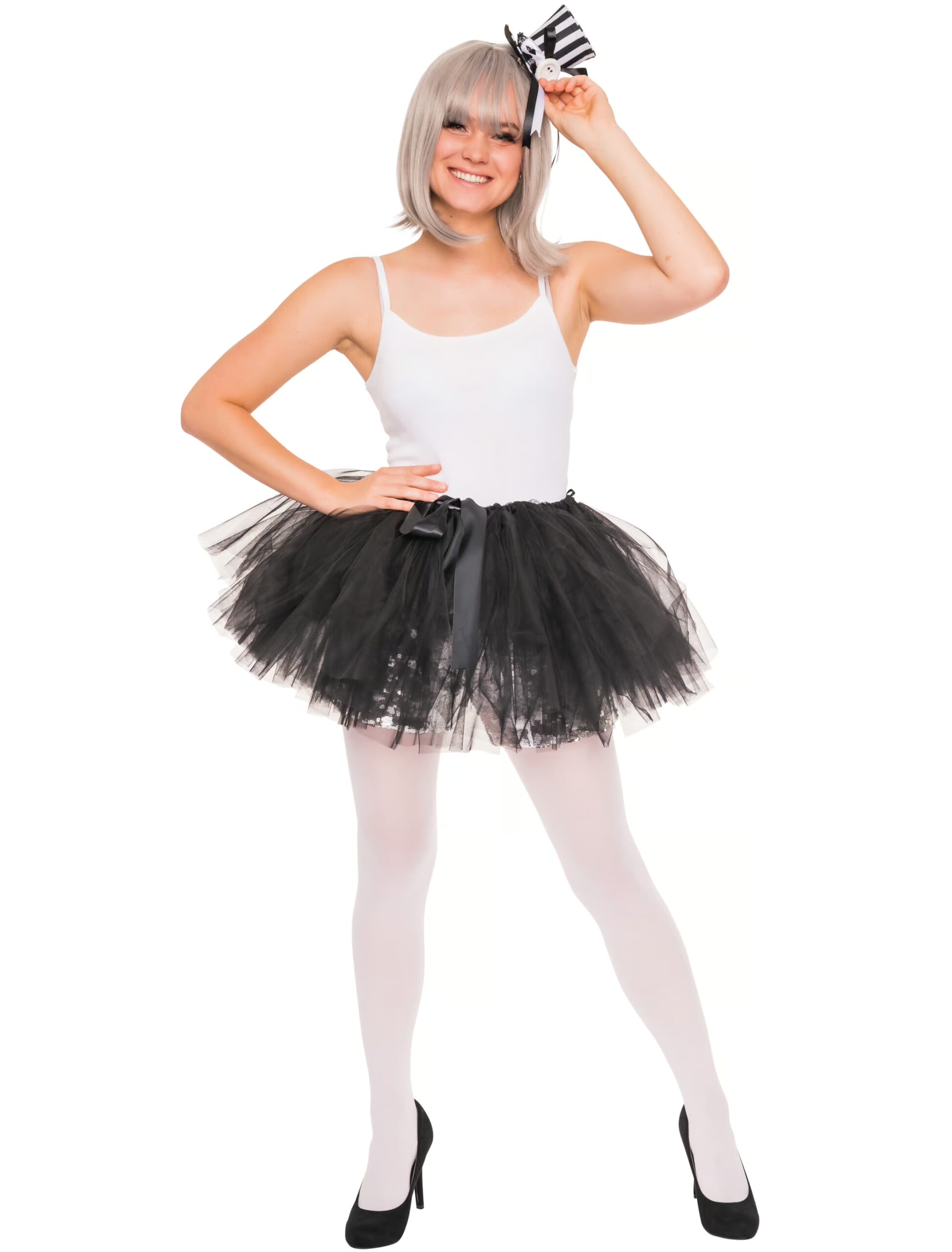 Hier kommt er, der perfekte Hingucker für Halloween-, Motto- und Karnevalspartys! Die kurze, schwarze Tüllschleppe kannst Du bequem mit Hilfe einer Schleife über einen (Basic-)Rock tragen. Highlights sind die bunten und blinkenden LED-Leuchten, die Du bequem am integrierten und versteckten Batteriefach ein- und ausschalten kannst. Der Rock ist das perfekte Accessoire für alle Damen und Herren, die sich sexy und auffällig verkleiden möchten!