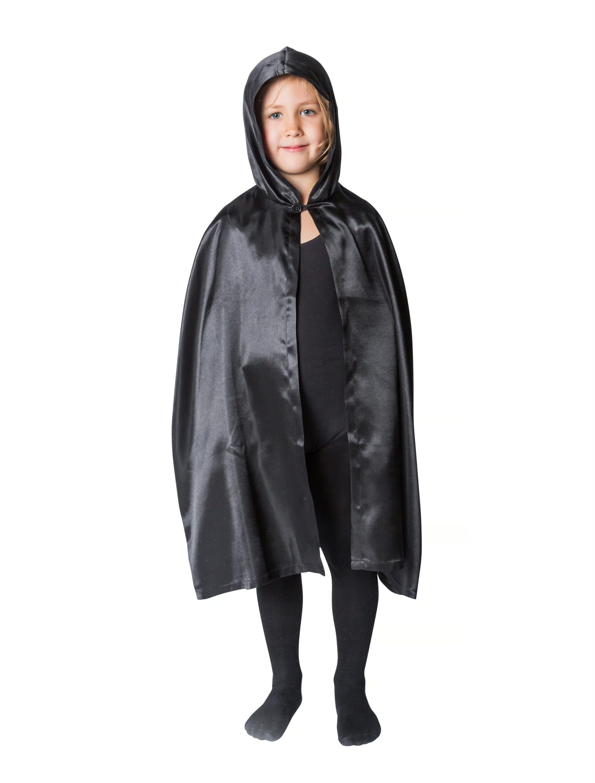 Umhang mit Kapuze schwarz 128, ideal für Karneval & Fasching
