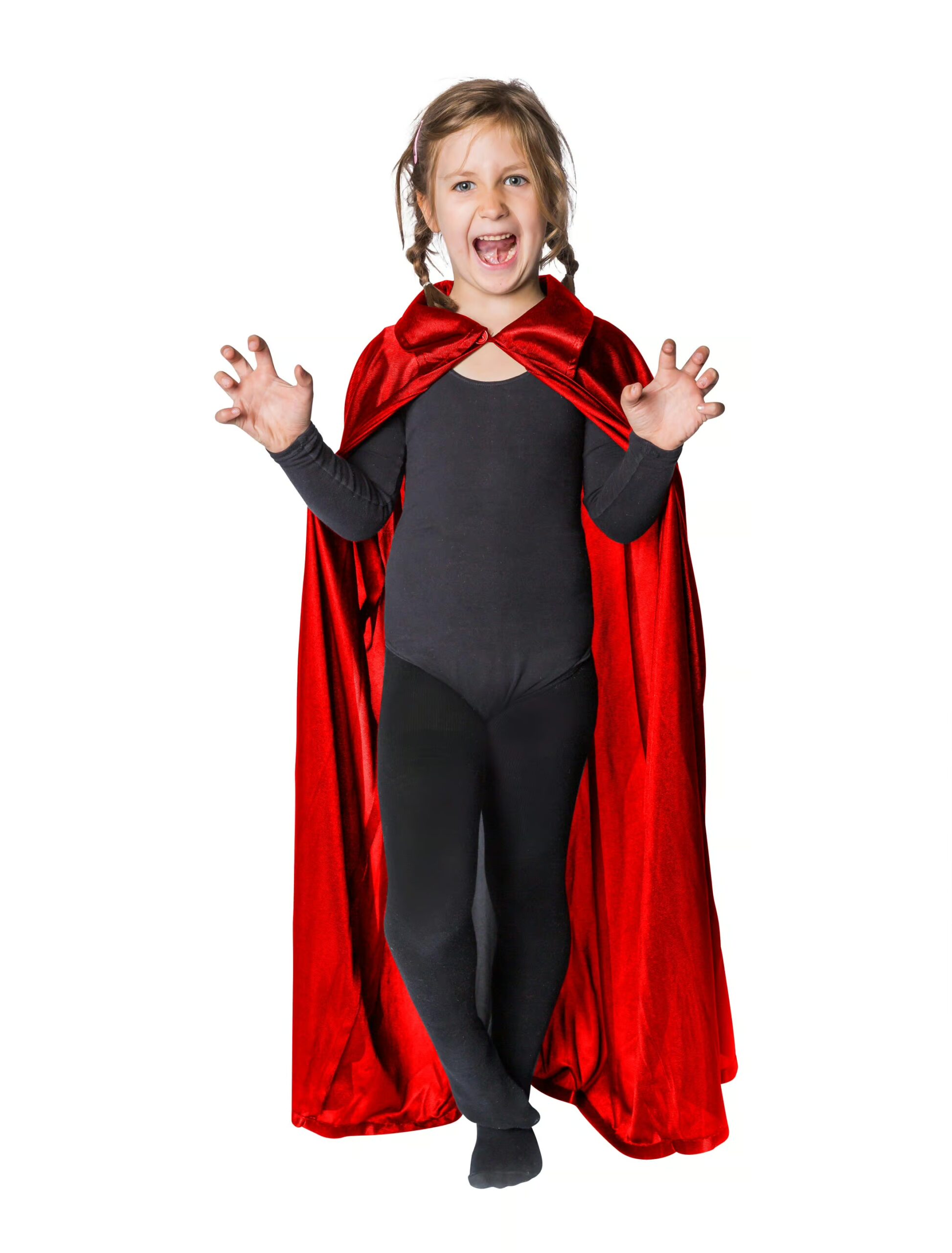 Bist Du ein Vampir, oder ein neuer Superheld? Egal, wie Du Dich entscheidest, mit Deinem roten Cape mit Kragen siehst Du richtig cool aus. Und fliegen kannst Du auch mit ihm. Wo soll es als nächstes hingehen? Dieser Umhang passt wunderbar zu jeder Karnevals-, Faschings- oder Halloween-Party.