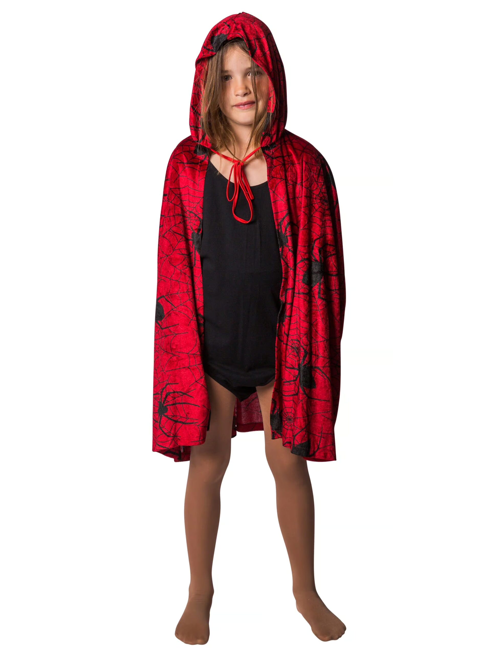 Umhang Spinnweben mit Kapuze Kinder rot 152