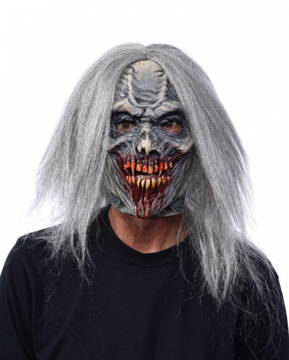 Urzeit Vampir Maske mit Perücke für Halloween Fiese Vollkopfmaske mit blutigen Zähnen und Perücke Mit der furchterregenden Urzeit Vampir Maske mit Perücke wirst du zum Mittelpunkt jeder Gruselparty! Die detailgetreue Gestaltung der Halloween Vollkopfmaske lässt keine Wünsche offen und verleiht dir ein Aussehen, das für schaurige Momente sorgt. Die Urzeit Vampir Maske besteht aus hochwertigem Latex, das eine realistische Textur und Haltbarkeit gewährleistet. Das Kunsthaar macht die hochwertige Halloween Maske noch gruseliger. Das Material ist hautfreundlich und angenehm zu tragen. Lieferumfang: 1 x Urzeit Vampir Maske Farbe: Grau, Rot, Beige Größe: Einheitsgröße für Erwachsene Material: Latex, Kunsthaar Fiese Maske mit langen grauen Haaren für ein schauriges Halloween Outfit Der Artikel ist ein Kostümzubehör für Erwachsene und kein Spielzeug. Nicht für Kinder unter 3 Jahren geeignet. Kann Kleinteile enthalten, die verschluckt werden können – Erstickungsgefahr. Von Feuer und offenen Flammen fernhalten.