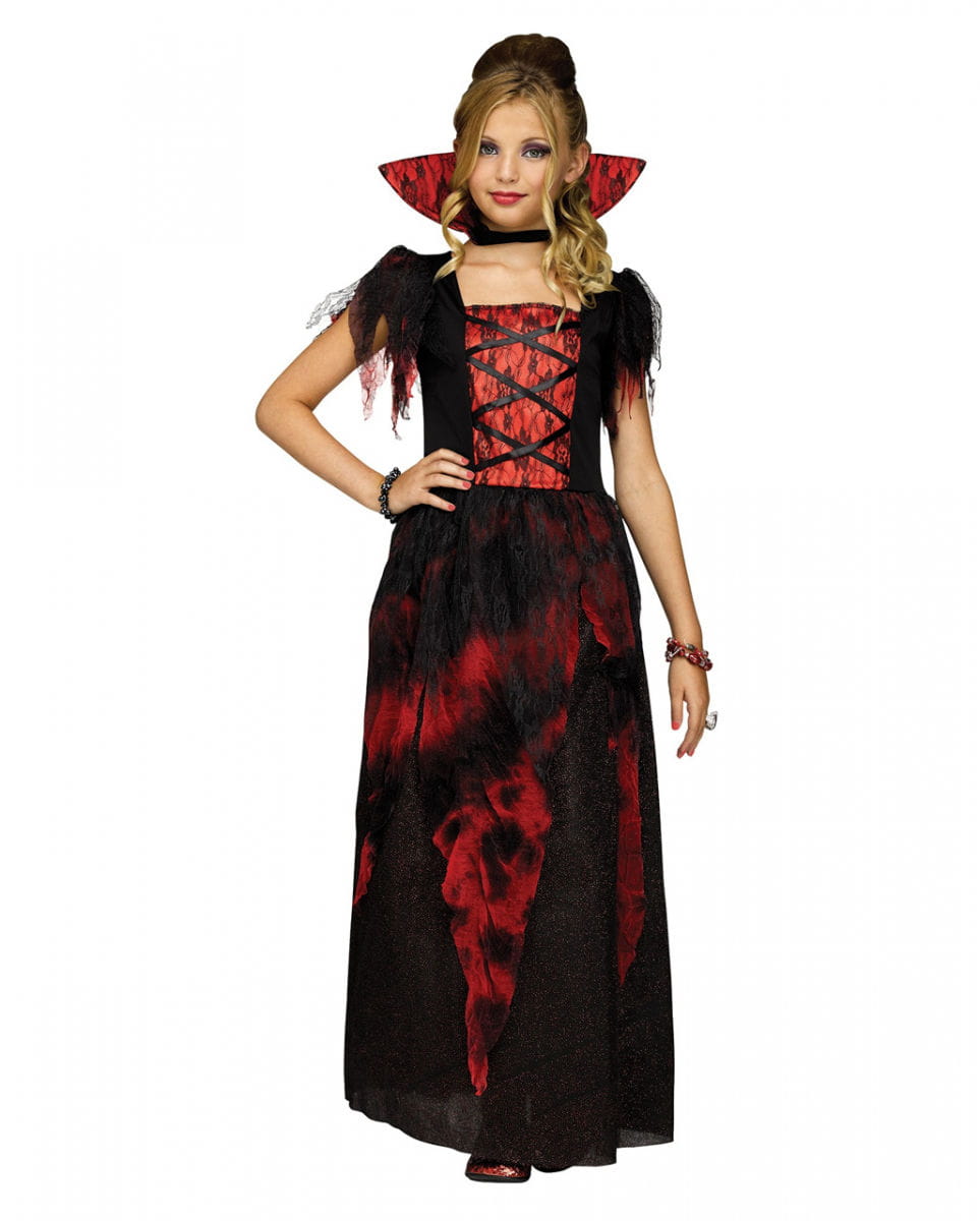 Vampir Gräfin Kinderkostüm für Halloween Stylische Vampirbraut-Verkleidung mit abnehmbarem Stehkragen für deinen Auftritt als Blutsauger Werde mit unserem Vampir Gräfin Kinderkostüm für Halloween im Nu zu einer dunklen Vampirella und begib dich des Nachts auf die Suche nach Blut! Die im Gothic-Stil gehaltene Vampirin-Verkleidung macht dich auf den nächsten Walpurgisnacht-Feiern sowie auf Motto-Partys garantiert zum absoluten Blickfang! Das Vampir Gräfin Kinderkostüm für Halloween besticht durch seine schöne Optik. Das Kleid der Halloween-Verkleidung mit seinen düsteren Rot- und Schwarztönen unterstreicht die gefährliche Aura hungriger Vampirdamen. Stilisierte Fetzen an den Ärmeln sorgen zusätzlich für eine finstere Optik als fliegende Blutsaugerin. Die angedeutete Schnürung verleiht dem Halloween-Kleid eine Gothic-Optik und sorgt für einen taillierten Schnitt. Zahllose rote Pailletten schmücken deine Fledermaus-Verkleidung zusätzlich und funkeln bei Lichteinfall. Abgerundet wird die Vampir-Verkleidung durch einen charakteristischen, per Klettstreifen einfach abzunehmenden, Stehkragen. Lieferumfang: 1x Vampir Gräfin Kinderkostüm für Halloween Inhalt: 1 Kleid, 1 Kragen (Schmuck nicht inkl.) Farbe: schwarz/rot Material: Kleid aus 100% Polyester Größe XL ca. 14-16 Jahre Brustumfang ca. 78-83 cm Taillenumfang ca. 66-68 cm Körpergröße ca. 149-157 cm Achtung: Der Artikel ist ein Kostüm und kein Spielzeug. Nicht für Kinder unter 3 Jahren geeignet. Kann Kleinteile enthalten, die verschluckt werden können – Erstickungsgefahr. Von Feuer und offenen Flammen fernhalten.