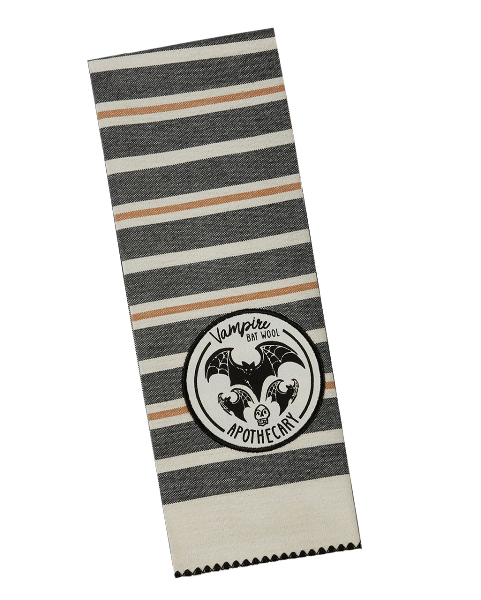 Vampire Apothecary Halloween Homeware Geschirrtuch Gestreiftes Küchen Trockentuch mit Fledermäusen als Halloween Homeware Mit dem Vampire Apothecary Halloween Geschirrtuch hast du ein praktisches Küchentuch, das jeden Raum in eine geheimnisvolle Kulisse verwandelt, die aus einem Gothic Film stammen könnte. Lass dich von den Motiven der Fledermäuse und Totenköpfe inspirieren. Das Vampire Apothecary Halloween Geschirrtuch ist ca. 45 x 70 cm groß, was es sowohl praktisch als auch auffällig macht. Das Design kombiniert Streifen mit einem schicken schwarzen Saum und präsentiert stolz die Aufschrift ",Vampire BAT WOOL APOTHECARY",. Lieferumfang: 1 x Vampire Apothecary Halloween Geschirrtuch Farbe: Beige, Schwarz, Orange Größe: ca. 45 x 70 cm Material: 100% Baumwolle Fledermäuse und Totenkopf als Motiv ",Vampire BAT WOOL APOTHECARY", Aufschrift Gestreiftes Design mit schwarzem Saum Hochwertiges Küchentuch für Halloween Tolle Halloween Deko für die Küche Elegante Halloween Homeware