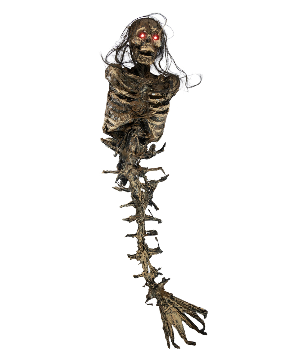 Vermodertes Meerjungfrau Skelett 85cm Unheimliches Skelett einer nach einer Ölpest im Ölschlamm erstickten Wassernixe Stell dir eine stürmische Küste vor, umhüllt von dichtem Nebel und tosenden Wellen. Plötzlich erblickst du ein groteskes Relikt zwischen den Überresten des Meeres: ein verrottetes Meerjungfrau-Skelett. Einmal eine Schönheit der Tiefsee, jetzt nur noch ein gruseliges Wrack mit bloßliegenden Rippen und einer zerfetzten Schwanzflosse. Das Vermoderte Meerjungfrau Skelett besteht aus Kunststoff und ist in realistischen Verwesungstönen von Braun, Beige, Olive und Schwarz gehalten. Der Torso mit Rippenstruktur, der Totenschädel mit strohigen Haarresten und die verfallene Schwanzflosse verleihen ihr eine schaurig-authentische Optik. Die wächsern wirkende Haut verstärkt den Eindruck eines einst lebendigen, nun im schwarzen Ölschlamm erstickten Wesens. Lieferumfang: 1 x Vermodertes Meerjungfrau Skelett 85cm Farbe: Braun, Olive, Beige, Schwarz Größe: ca. 85 x 20 x 10 cm Material: Kunststoff Morbid wirkende Halloween Dekoration für dein Kuriositäten-Kabinett Der Torso des Skeletts zeigt die Rippen und den Totenschädel mit strohigem Resthaar Der Unterkörper der Meerjungfrau zeigt die skelettierten Gräten und Schwanzflosse Die durch Weichteilkonservierung erhaltene Haut wirkt wächsern und pergamentartig Die Halloween-Dekoration lässt sich hängend oder liegend präsentieren Extravagante Halloween Figur für Gruselfans