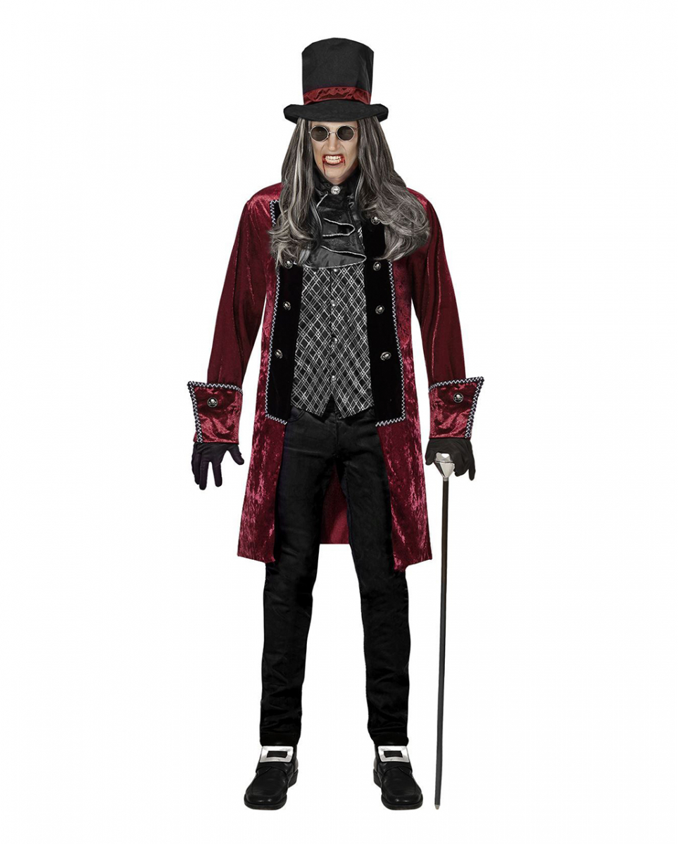 Viktorianischer Vampir Herrenkostüm als Verkleidung zu Halloween und Karneval Verführe die Damen mit dem adeligen Charme eines uralten Blutsaugers Mit dem Viktorianischer Vampir Herrenkostüm bist du ein gern gesehener Gast. Nicht nur im Schloss des Grafen Dracula heißt man dich als alten Freund willkommen. Auch auf der Mottoparty ist man beeindruckt von deinem edlen Auftritt als adeliger Vampir. Dein aristokratischer Charme wirkt vor allem bei den anwesenden Damen. Die Ladys werden sich dir in die Arme werfen, damit du deine spitzen Fangzähne in ihre Hälse haust. Na dann Prost! Das Viktorianischer Vampir Herrenkostüm beschert dir Blut und Herzen en masse. Dafür sorge die edlen Details des Vampir-Kostüms. Die Jacke im viktorianischen Stil besitzt eine angenähte Weste. Der Stoff schimmert in samtigen Dunkelrot und die aufgeschlagenen Ärmel mit den Ziernähten verfeinern den Look. Der Jabot macht aus dir einen Herrn von Welt. Ebenfalls zur Blutsauger Verkleidung gehören die schwarzen Handschuhe und der Hut. Lieferumfang: 1 x Viktorianischer Vampir Herrenkostüm Farbe: Schwarz / Rot / Silber Größe: S, M, L, XL, XXL, XXXL Material: 100% Polyester Lieferinhalt: Jacke mit Weste, Jabot, Handschuhe, Hut (Hose und Stock nicht inbegriffen) Eindrucksvolles Halloweenkostüm für einen perfekten Auftritt als uralter Blutsauger In edler Samtoptik. Größe S 48 M 50 L 52 XL 54 XXL 56 XXXL 58