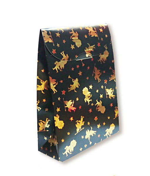 Geschenkebox klein 25 Stück Hübsche Verpackung für deine Weihnachtspräsente Die Geschenkebox ist in einem hübschen weihnachtlichen Design mit gold-roten Engeln und Sternen auf dunklem Hintergrund gestaltet. Du musst sie nur an den Knickstellen falten und im Nu hast du eine bezaubernde Geschenkverpackung für kleine Präsente. Produktinformationen: Inhalt: 25 Stück Material: Pappe Farbe: Dunkelblau mit rot-goldenem Weihnachtsmotiv Größe: Länge ca. 18 cm, Breite ca. 11 cm, Tiefe ca. 5 cm