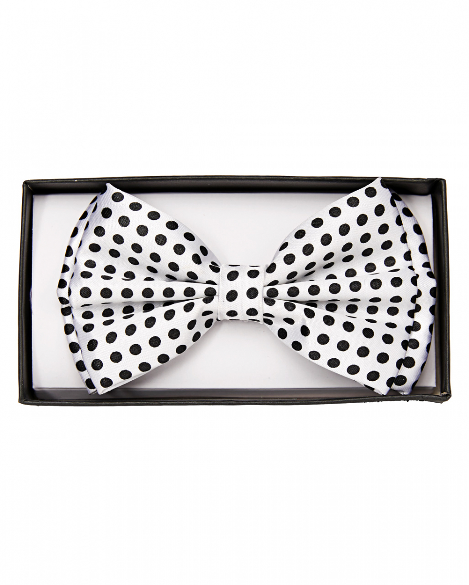 Weiß-schwarze Polka Dot Fliege Deluxe als Kostüm Zubehör für Fasching und Mottoparties Hochwertige Herrenfliege in edlem Dot Design als 50er Jahre Party Kostüm Zubehör Verkleidungs Accessoires wie die weiß-schwarze Polka Dot Fliege Deluxe sind die idealen Highlights für 50er Jahre Motto Kostüme. Der zweifarbige Querbinder, wie solche Schleifen noch genannt werden, verwandelt dich mit einem schlichten Hemd im Nu zu einem eleganten Pin Up Boy. Ob für Mottoparty, Karneval oder Halloween – Kostüm Accessoires wie die weiß-schwarze Herrenfliege passen einfach immer. Die weiß-schwarze Polka Dot Fliege Deluxe wird in einer attraktiven Box geliefert, welche sie auch zu einem perfekten Geschenkartikel für Gentlemen macht, aber auch die optimale Aufbewahrung der edlen Krawattenschleife gewährleistet. Die gepunktete Kostüm Fliege ist ca. 13 x 6,5 cm groß und wird ganz einfach mit einem Klickverschluss im Nacken geschlossen. Das längenverstellbare Satinband ist universell für nahezu jeden Halsumfang passend. Lieferumfang: 1x Weiß-schwarze Polka Dot Fliege Deluxe Farbe: Schwarz / Weiß Größe: Fliege: ca. 13 cm x 6,5 cm / Verschlussband ca. 45 cm Material: Polyester und Kunststoff Klickverschluss aus Kunststoff Universalgröße (längenverstellbar) Lieferung in attraktiver Box Herrenfliege als Kostüm Zubehör Der Artikel ist ein Kostümzubehör für Erwachsene und kein Spielzeug. Nicht für Kinder unter 3 Jahren geeignet. Kann Kleinteile enthalten, die verschluckt werden können – Erstickungsgefahr. Von Feuer und offenen Flammen fernhalten.