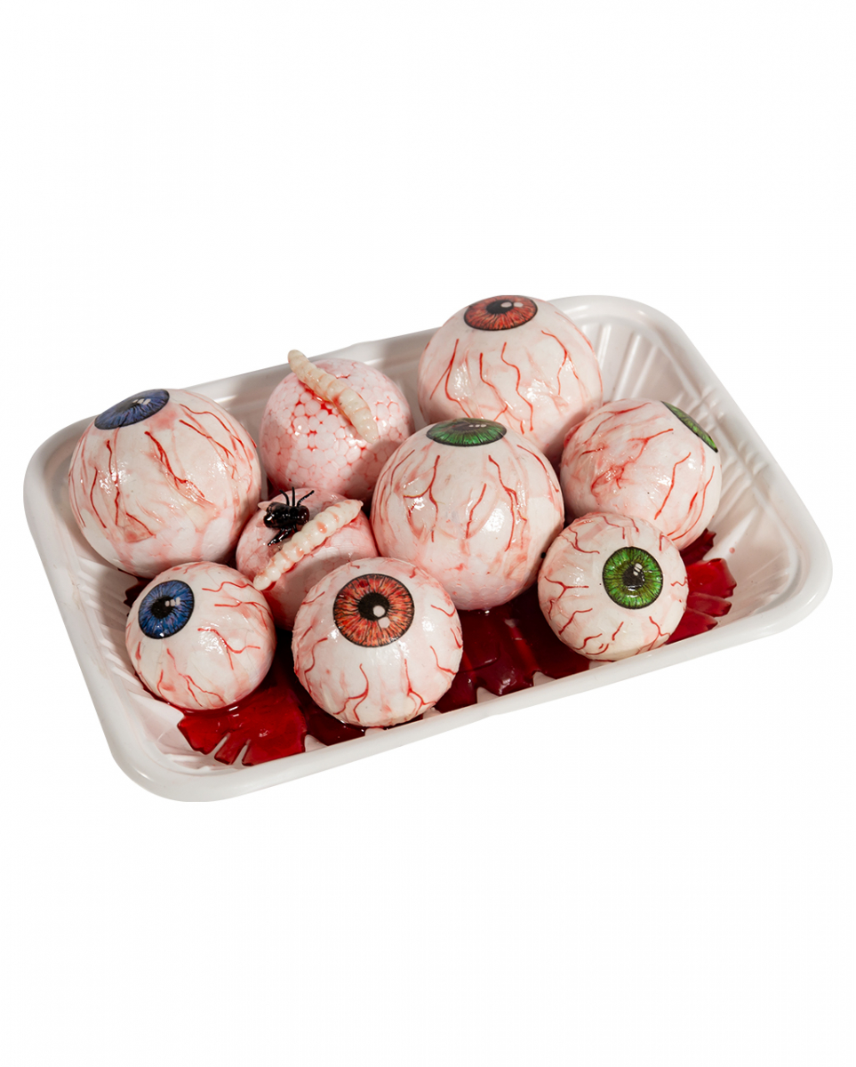 Weißer Essteller mit blutigen Augäpfeln als Deko 19 cm Neun verschiedene Augen als morbide Halloween Tischdeko und Horrorfilm Requisite Bist du bereit, dein Halloween-Fest in ein wahres Horror-Szenario zu verwandeln? Stell dir vor, du betrittst deine Küche und findest den weißen Essteller mit blutigen Augäpfeln vor. Ein Anblick, der selbst den abgebrühtesten Horror-Fan erschaudern lässt. Der weiße Essteller mit blutigen Augäpfeln hat eine Größe von ca. 19 x 14,5 x 5,5 cm und besteht aus Kunststoff. Das realistische Aussehen der neun verschiedenfarbigen Augen mit nass glänzendem Blut sorgt für einen echten Schockeffekt. Lieferumfang: 1 x Weiße Metzgerschale mit blutigen Augäpfeln 19cm Farbe: Weiß, Rot, Blau, Grün Größe: ca. 19 x 14,5 x 5,5 cm Gewicht: 135 g Material: Kunststoff Frische Augäpfel in einer weißen Speiseschüssel als Splatter Deko Neun, verschiedenfarbige Augen mit nass glänzendem Blut als Schockeffekt Gestalte jetzt dein Horrorfilm-Szenario wie aus ",Blutgericht in Texas", Für Splatter Fans von Schweigen der Lämmer, Dahmer und Wrong Turn Krasse Horror Film Requisite und Halloween Deko mit realistischem Aussehen Dekoriere jetzt deine Kannibalen Küche oder Schlachthaus Kühlkammer Der Artikel ist eine Halloween Deko und kein Spielzeug. Nicht für Kinder unter 3 Jahren geeignet. Kann Kleinteile enthalten, die verschluckt werden können – Erstickungsgefahr. Von Feuer und offenen Flammen fernhalten.