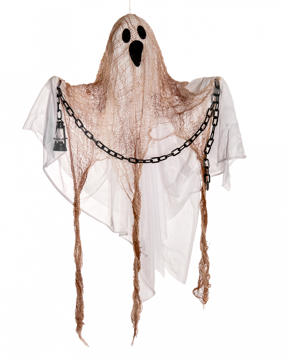 Weißer Geist mit Lichteffekt als Hängefigur 90cm Gespenst als kinderfreundliche Halloween Dekoration Unser weißer Geist mit Lichteffekt als Hängefigur macht sich super als Geisterbahn Deko. Die Halloween Hängefigur zeigt ein Fetzengespenst mit Laterne und Kette – perfekt für deine Haunted House Party! Das weiße Gespenst mit Licht ist eine 90 x 50 x 10 cm große Hängefigur für Halloween. Um den Geist leuchten zu lassen, benötigst du Batterien, die separat erhältlich sind. Seine beachtliche Größe macht den Deko-Geist zum echten Hingucker. Lieferumfang: 1 x Weißer Geist mit Lichteffekt als Hängefigur 90cm Farbe: Weiß, Braun, Schwarz Größe: ca. 90 × 50 × 10 cm Batterien: Es werden 3 x LR44 Batterien benötigt, nicht inkl. Material: Kunststoff, Polyester, Draht Gespenst mit Fetzenkleid als dekorative Halloween Hängedeko Gruselige Hängefigur Kinderfreundliche Party- Deko für Halloween Die Laterne ist reine Dekoration und besitzt keine Funktion