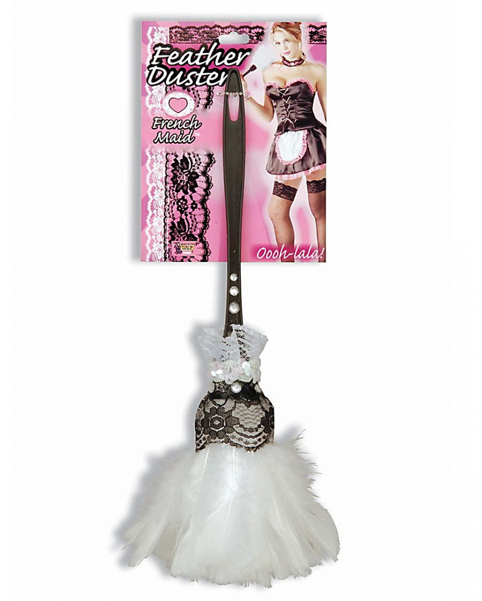 Schwarz/weißer Staubwedel mit Spitze als Kostümzubehör für Fasching und Karneval Sexy Kostümaccessoire in Form eines Feder Staubwedels Wer auf der nächsten Fetisch Party vor hat als verführerisches Zimmermädchen die Männer um den Finger zu wickeln, braucht einen eleganten Staubwedel mit Spitze als Accessoire für das sexy Haushälterin Kostüm. Der Zimmermädchen Staubwedel ist super weich und wer weiß, was dir noch damit einfällt… Der Staubwedel mit Spitze besteht aus weißen Maraboufedern die an einem schwarzen Kunststoff Griff mit Spitze angebracht sind. Er ist 35 cm lang und ein toller Begleiter für Kostüme mit dem gewissen Kick. Lieferumfang: 1 x Staubwedel mit Spitze Farbe: Weiß/Schwarz Größe: ca. 35 cm Material: Kunststoff, Maraboufedern Frivoles Kostüm Accessoire Wunderbar für sexy Fetisch Kostüme Elegant mit Spitze und Glitzersteinen besetzt Produkt enthält echte Federn, die Allergien auslösen können. Von Feuer und Flammen fernhalten.