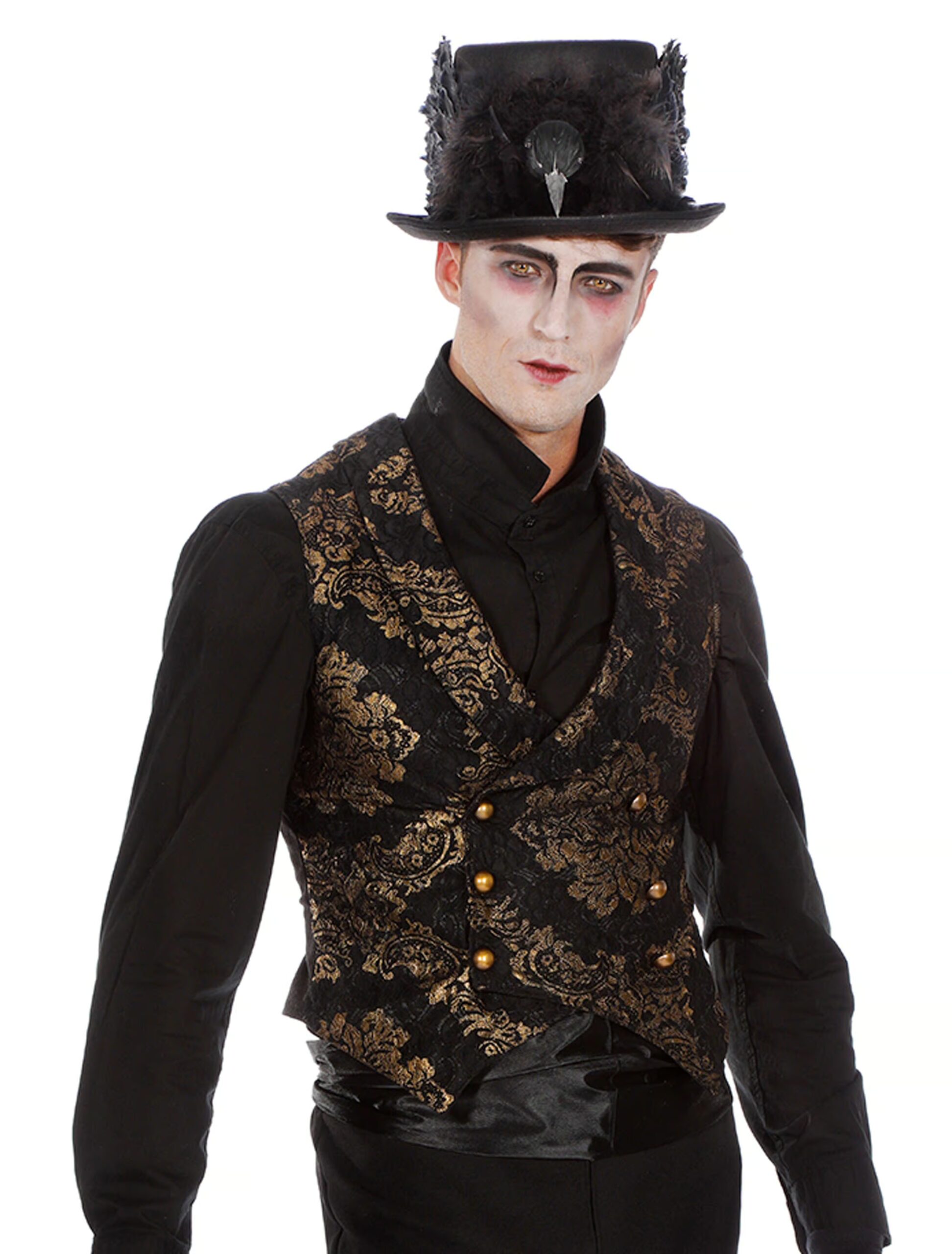 Du bist zu einer Halloweenparty eingeladen und suchst noch den letzten Schliff für Deine schaurige Verkleidung? Gar kein Problem! Unsere Gothic Weste für Herren darf hier nicht fehlen. Ein schönes Kostümteil zu Halloween, Karneval und Fasching. Die Weste ist aus 100% Polyester gefertigt. Das Produkt beinhaltet nur eine Weste. Feht nur noch ein schwarzer Hut, ein Frack sowie eine schicke Fliege.