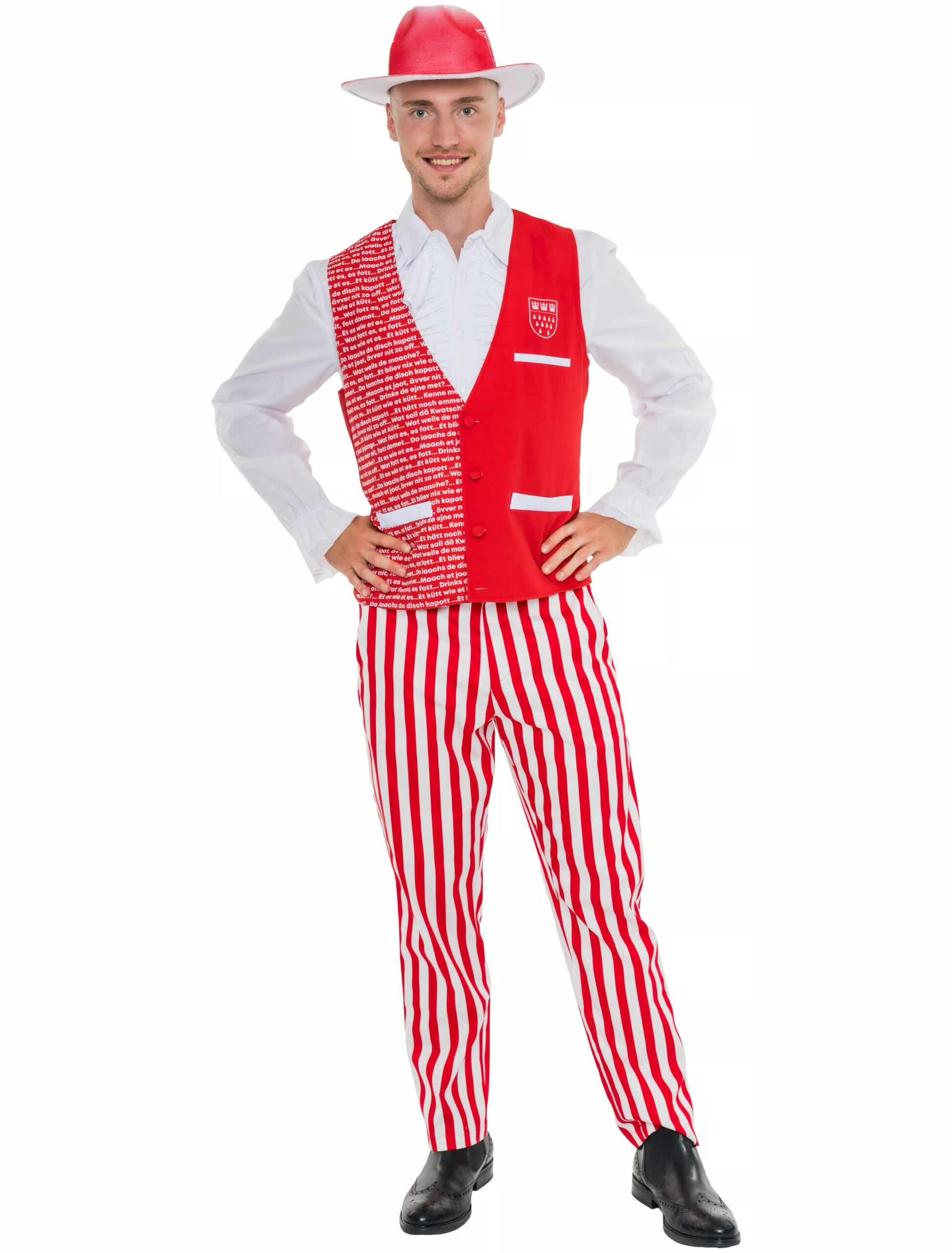 Du bist ein echter Kölner oder einfach ein Fan der rheinischen Lebensfreude? Dann ist unsere Köln Herren Weste das perfekte Accessoire, um deine Heimat zu feiern – und das mit Stil! Die Weste hat gleich zwei Seiten, die beide ihr ganz eigenes Highlight sind. Auf der einfarbigen Seite prangt stolz das Kölner Wappen – ein echtes Statement für deine Liebe zur Domstadt. Die andere Seite der Weste sorgt für ordentlich Kölner Stimmung: Sie ist mit allerlei kölschen Sätzen verziert, die jeder echte Jeck kennt. Sei der Star auf der nächsten Karnevalsparty oder zeig einfach überall, dass du Kölle im Herzen trägst!