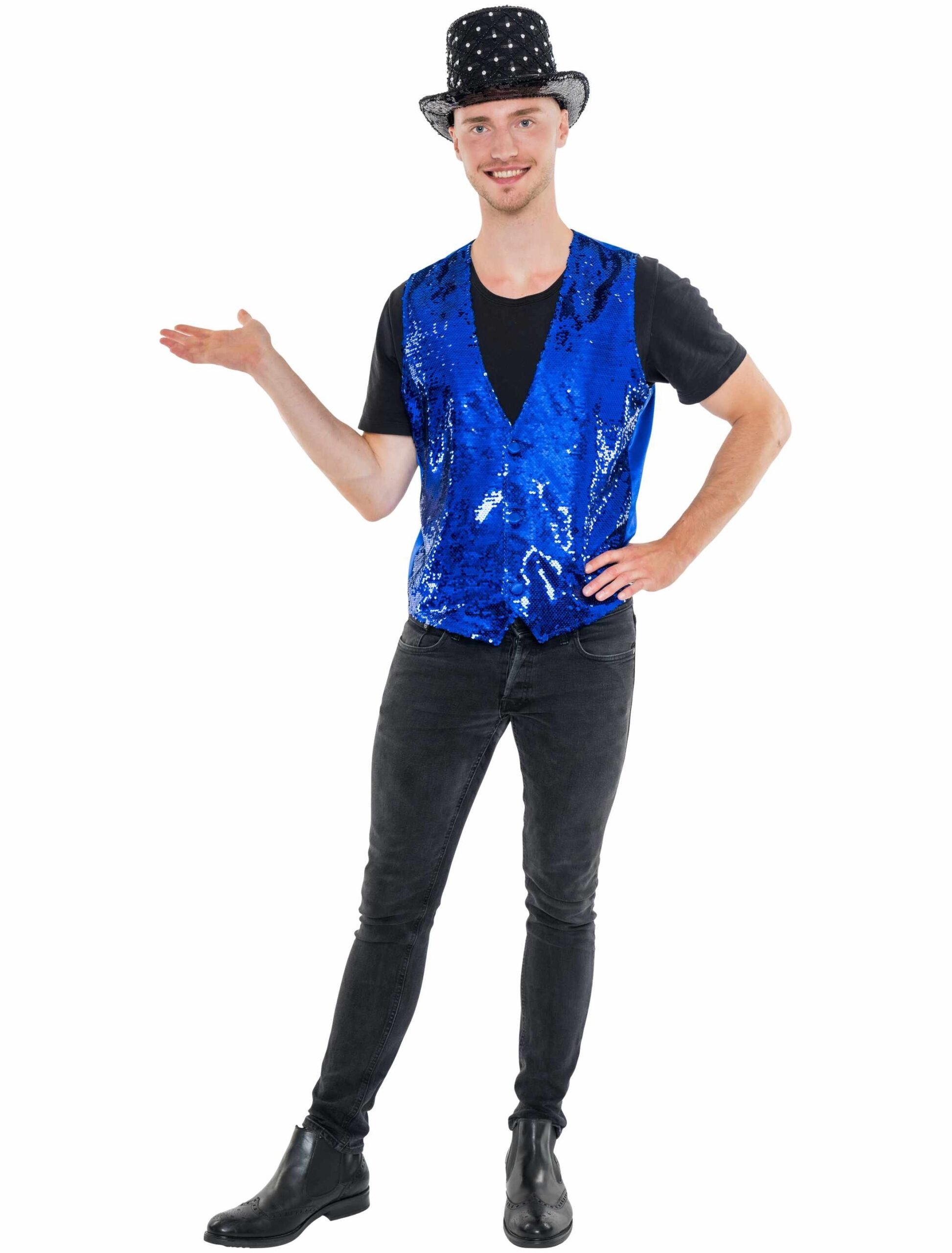 Mit unserer Pailletten de luxe Weste bist du ein strahlendes Statement. Ein wandelndes Funkeln, ein echter Glanzmagnet! Die edlen Pailletten reflektieren das Licht, als hättest du deinen eigenen Scheinwerfer dabei. Ob du als Disco-König auf der Tanzfläche glänzen willst, beim Karneval den funkelnden Gentleman gibst oder einfach nur deine Freunde mit deinem unschlagbaren Sinn für Stil beeindrucken möchtest – diese Weste lässt keine Wünsche offen. Sei der strahlende Mittelpunkt jeder Feier, und denk daran: Mehr Glanz geht nicht!
