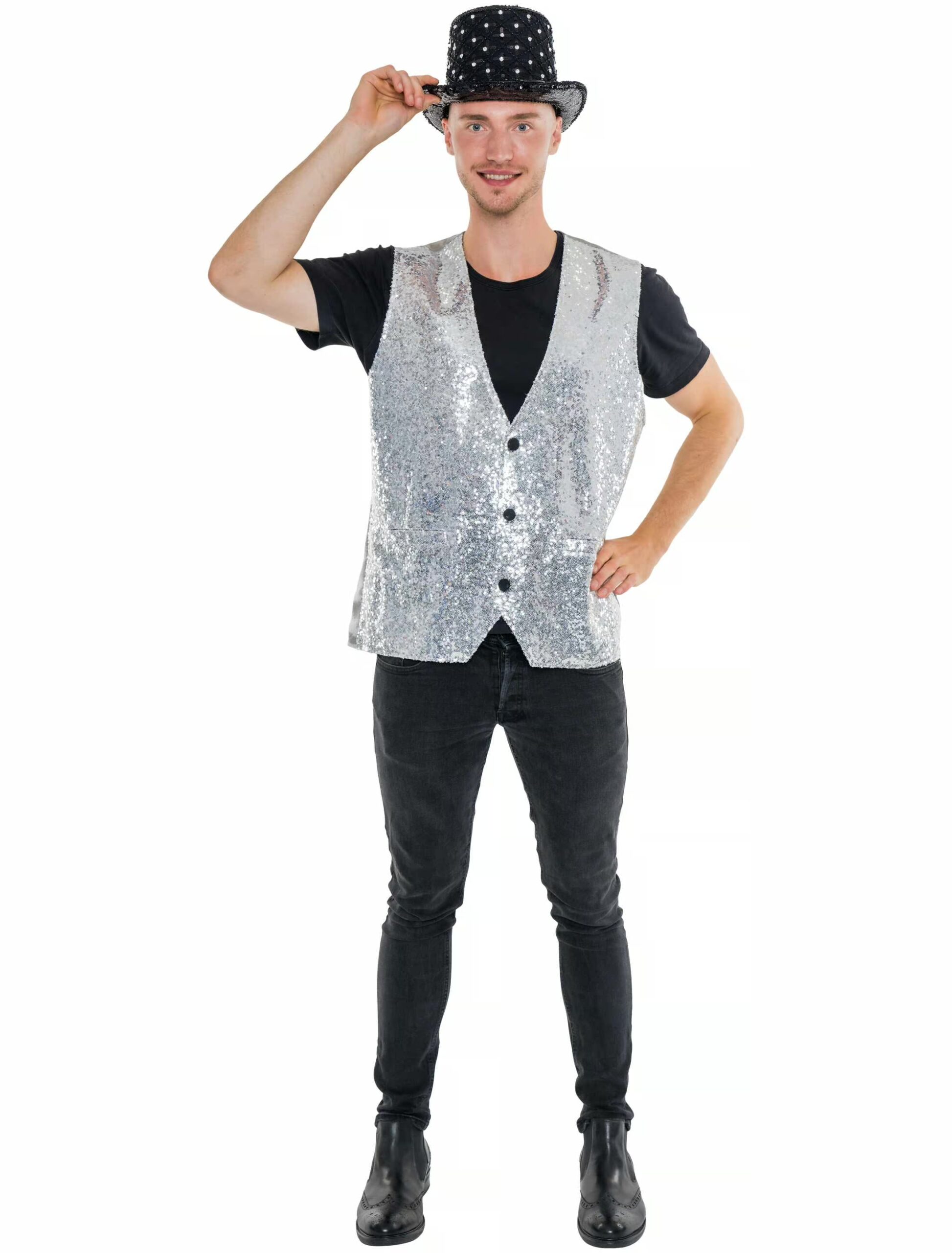 Mit unserer Pailletten de luxe Weste bist du ein strahlendes Statement. Ein wandelndes Funkeln, ein echter Glanzmagnet! Die edlen Pailletten reflektieren das Licht, als hättest du deinen eigenen Scheinwerfer dabei. Ob du als Disco-König auf der Tanzfläche glänzen willst, beim Karneval den funkelnden Gentleman gibst oder einfach nur deine Freunde mit deinem unschlagbaren Sinn für Stil beeindrucken möchtest – diese Weste lässt keine Wünsche offen. Sei der strahlende Mittelpunkt jeder Feier, und denk daran: Mehr Glanz geht nicht!