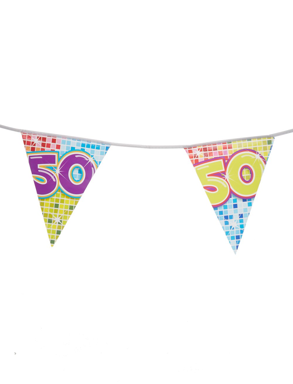 50 Jahre ist eine ganz schön lange Zeit und deshalb sollte dieses Jubiläum auch ordentlich gefeiert werden. Die fröhlich bunte Wimpelkette 50 Jahre eignet sich ideal, um eine schlichte Feier aufzupeppen. Die sechs Meter lange Kette kann an ihren Ende ganz einfach aufgehangen werden und lässt bereits beim Betreten des Raumes richtige Feierstimmung aufkommen. Darüber hinaus kann die Wimpelkette leicht mit weiteren 50 Jahre Motiven kombiniert werden. Egal welches große Jubiläum Du feierst, die Wimpelkette 50 Jahre verpasst Deiner Party den letzten Schliff.