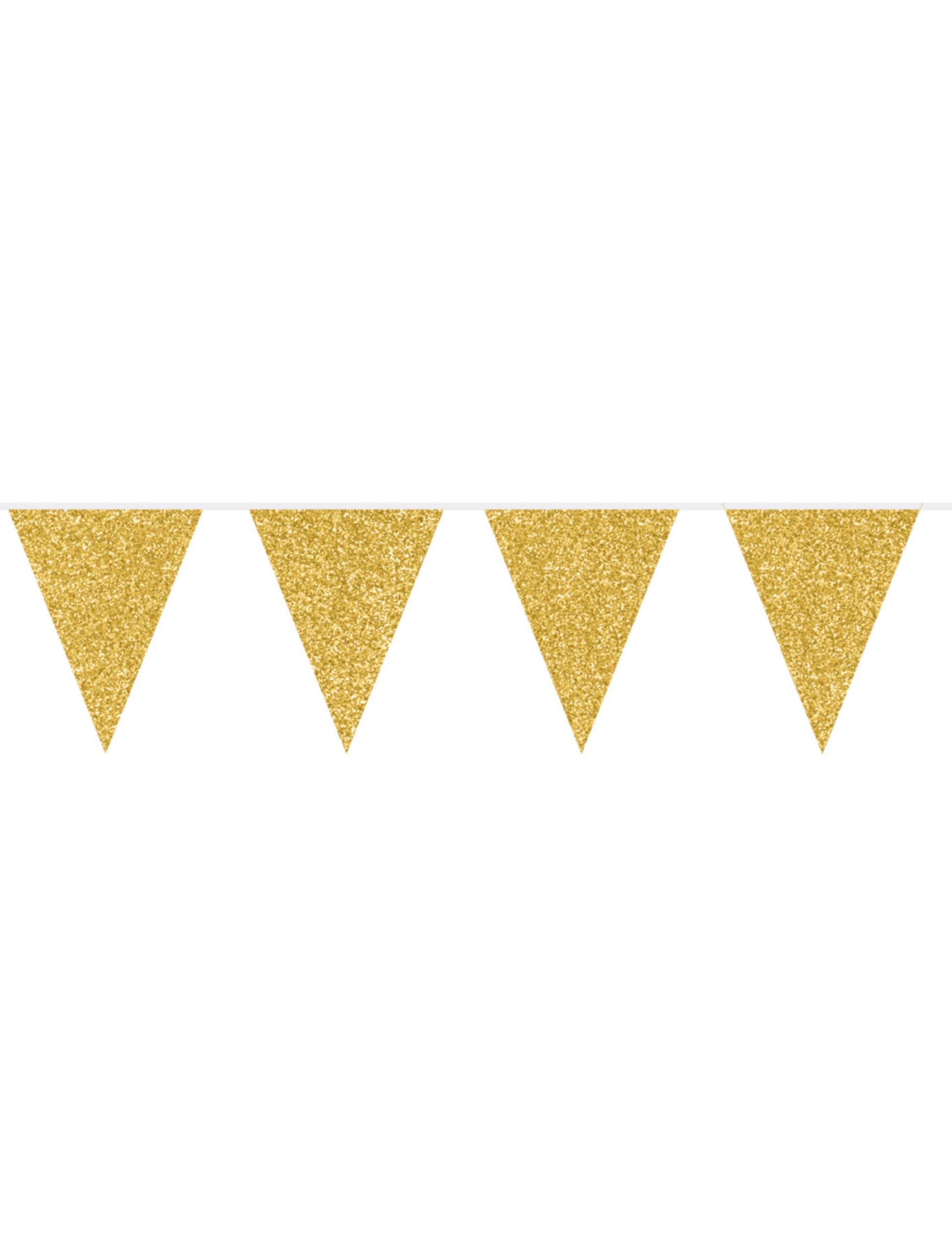 Dir steht eine Goldene Hochzeit ins Haus und Du bist noch auf der Suche nach dem passenden Festsaal-Schmuck? Mit der sechs Meter langen Wimpelkette Glitter gold ist für die perfekte Deko schon gesorgt. Das Brautpaar wird begeistert sein! Dank des Glitzer-Effekts machen sich die zehn Wimpel auch gut auf 80er Jahre Discopartys und ausgelassenen Faschingsfeten.