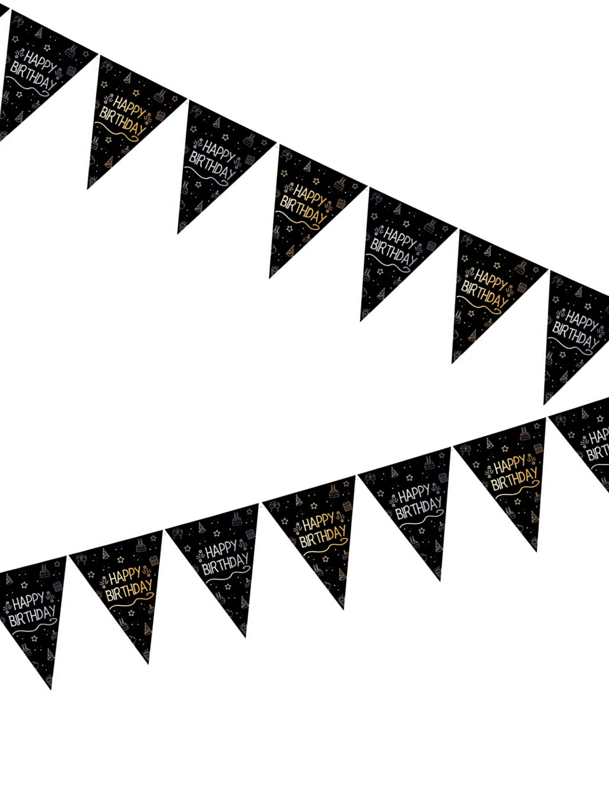 Wimpelkette Happy birthday 4m schwarz, ideal für Geburtstag / Jubiläum