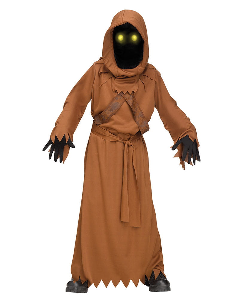 Wüstendämon Kinderkostüm mit Leuchtaugen für Halloween Sci-Fi-Kostümierung mit Leuchteffekt Werde mit unserem Wüstendämon Kinderkostüm mit Leuchtaugen für Halloween zu einem unheimlichen Wesen und erschrecke die anderen Partygäste! Durch den Leuchteffekt wird die gruselige Verkleidung zu einem absoluten Hingucker auf den nächsten Halloween und Mottopartys! Das Wüstendämon Kinderkostüm mit Leuchtaugen für Halloween besteht aus mehreren Teilen. Eine lange braune Robe, an Saum und Ärmeln im Fetzenlook gestaltet, wird mittels eines Gürtels in der gleichen Farbe in der gewünschten Enge geschnürt. Schwarze Handschuhe ergänzen den düsteren, dämonischen Look. In die braune Kapuze der Halloween Verkleidung ist vorne ein schwarzes Netz eingearbeitet, sodass deine Gesichtszüge von außen nur schwer zu erkennen sind. Besonderes Highlight des Grusel Kostüms ist der Leuchteffekt. An einem Brillengestell befinden sich statt der Gläser runde Leuchten, die auf Knopfdruck aktiviert werden können und daraufhin ein bleiches, an- und abschwellendes Licht verströmen. Das Sichtfeld wird dabei kaum beeinträchtigt, da sich die Leuchten knapp unterhalb der Augen befinden. Lieferumfang: 1x Wüstendämon Kinderkostüm mit Leuchtaugen für Halloween Inhalt: 1 Robe, 1 Gürtel, 1 Kapuze, 1 Leuchtaugen-Brille, 2 Handschuhe Farbe: braun/schwarz Material: 100% Polyester benötigt 2x AA-Batterien (nicht enthalten!) Größe S ca. 4-6 Jahre M ca. 8-10 Jahre L ca. 12-14 Jahre Brustumfang ca. 55-63 cm ca. 69-76 cm ca. 76-81 cm Taillenumfang ca. 48-55 cm ca. 58-63 cm ca. 60-66 cm Körpergröße ca. 97-117 cm ca. 124-137 cm ca. 139-152 cm Achtung: Der Artikel ist ein Kostüm und kein Spielzeug. Nicht für Kinder unter 3 Jahren geeignet. Kann Kleinteile enthalten, die verschluckt werden können – Erstickungsgefahr. Von Feuer und offenen Flammen fernhalten.