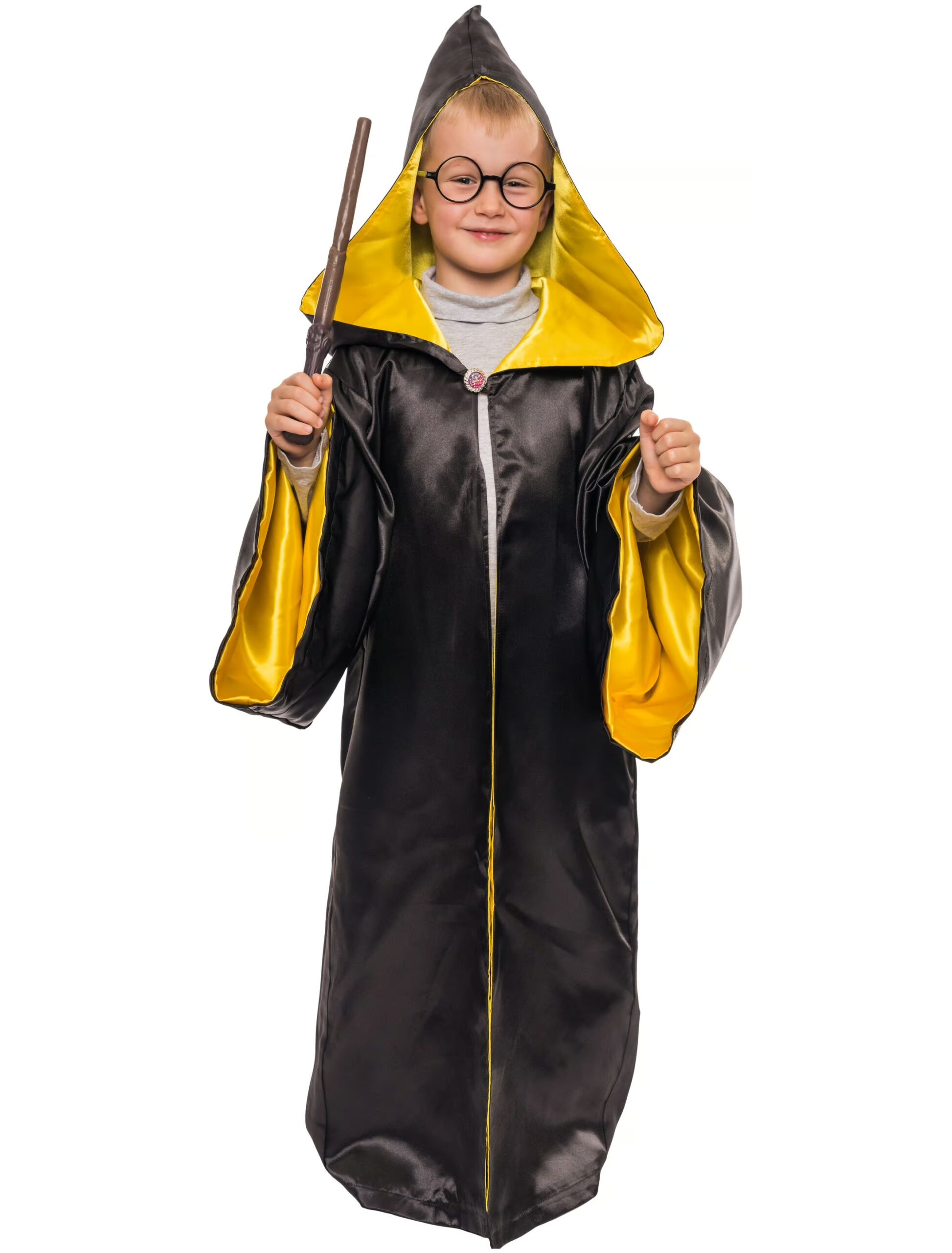 Zauberer Robe Kinder schwarz/gelb one size, ideal für Karneval & Fasching
