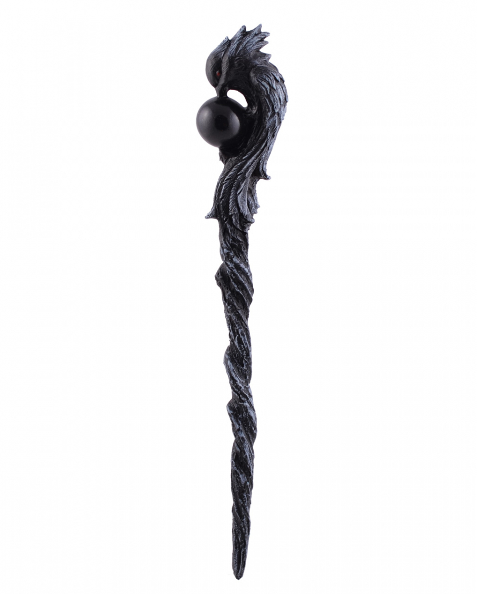 Magischer Zauberstab Black Phönix mit schwarzer Kugel Finsterer Zauberstab mit mystischem Vogel aus der Welt der Schatten Schnapp’ dir mit unserem magischen Zauberstab Black Phönix mit schwarzer Kugel ein hochwertiges Kostümaccessoire als Requisite für Cosplay und Theater! Der wunderschön anzusehende Zauberstab mit Fabelwesen sorgt garantiert für Aufsehen und eignet sich auch perfekt als Geschenkartikel für Fantasy-Fans! Der magische Zauberstab Black Phönix mit schwarzer Kugel weist eine Größe von ca. 4 x 3 x 25 cm auf. Aus Kunststein gefertigt, überzeugt der Cosplay-Zauberstab durch seine düstere Optik: Ein sorgfältig gestalteter Phönix thront an der Spitze des Stabes und bewacht eine schwarze Kugel, während sich der lange Schweif des Fabelwesen den Stab entlang nach unten ringelt – wie gemacht als Kostümzubehör für Fantasy-Feste! Detailreiche Verzierungen verschönern das Hexen-Accessoire zusätzlich. Lieferumfang: 1 x Magischer Zauberstab Black Phönix mit schwarzer Kugel Farbe: Schwarz / Grau / Rot Größe: ca. 4 x 3 x 25 cm Material: Polyresin (Kunststein) Schmuckstück für Fantasy und Märchen Fans Detailreich verziert Der Artikel ist ein Kostümzubehör und kein Spielzeug. Nicht für Kinder unter 3 Jahren geeignet. Kann Kleinteile enthalten, die verschluckt werden können – Erstickungsgefahr. Von Feuer und offenen Flammen fernhalten.