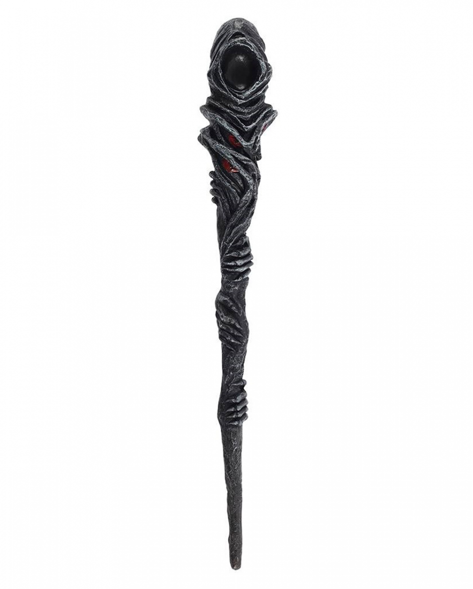 Magischer Zauberstab mit Grim Reaper Sensenmann Deko Stab als Requisite für Theater und Cosplay Unser magischer Zauberstab mit Grim Reaper Figur ist perfekt als Requisite für Theater oder als Sensenmann Kostümzubehör geeignet. Der Reaper Kostümstab zeigt eine dunkle Kuttengestalt mit rot glühenden Augen. Dein Grim Reaper Kostümzubehör ist ca. 2,5 x 3,5 x 24 cm groß. Obwohl aus modernem Kunststein gefertigt, wirkt der Sensenmann Stab wie aus antikem Gestein hergestellt. Lieferumfang: 1 x Magischer Zauberstab mit Grim Reaper Farbe: Grau, Schwarz, Rot Größe: 2,5 x 3,5 x 24 Material: Polyresin (Kunststein) Extravaganter Geschenkartikel und Kostümzubehör Effektvolle Requisite für Fantasy und Cosplay Fans Umfangreich verziert Der Artikel ist ein Kostümzubehör für Erwachsene und kein Spielzeug. Nicht für Kinder unter 3 Jahren geeignet. Kann Kleinteile enthalten, die verschluckt werden können – Erstickungsgefahr. Von Feuer und offenen Flammen fernhalten.