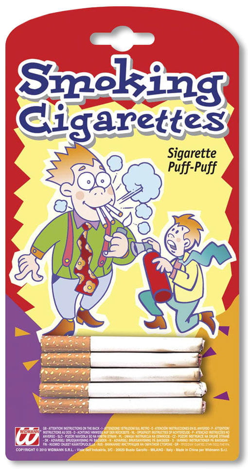 Scherzartikel Zigaretten Set mit Raucheffekt als Kostümzubehör und Requisite 5 Stück Scherzartikel Zigaretten mit Pudereffekt Du suchst nach einer neuen Möglichkeit, deine Eltern und Freunde zu schockieren? Dann ist dieses Zigaretten-Set mit Raucheffekt ideal für dich. Die 5 Fake Zigaretten sehen täuschend echt aus und machen eine Rauchwolke, wenn du hineinpustest. Die ",qualmenden", Zigaretten der Scherzartikel Zigaretten mit Raucheffekt sind mit weißem Puder befüllt, der die Illusion von Zigarettenrauch darstellt. Die Scherzartikel Zigaretten besitzen eine rot, glänzende Spitze aus Metallfolie und wirken damit, als würde die Fake-Zigarette, wirklich glimmen. Genialer Scherzartikel, der auch super als Requisite und Kostümzubehör wirken kann. Lieferumfang: 1 x Zigaretten Set mit Raucheffekt Inhalt: 5 Stück Genialer Scherzartikel Perfekt als Theaterrequisite Artikel ist ein Scherzartikel für Erwachsene. Nicht geeignet für Kinder unter 3 Jahren. Enthält Kleinteile, die verschluckt oder inhaliert werden können. Von Feuer fernhalten!